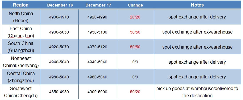 Comprehensive price list of each region: Yuan/ton