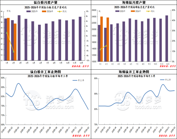 Factory plants that underwent maintenance during the Spring Festival holiday are gradually resuming production, and the titanium dioxide operating rate will gradually increase.