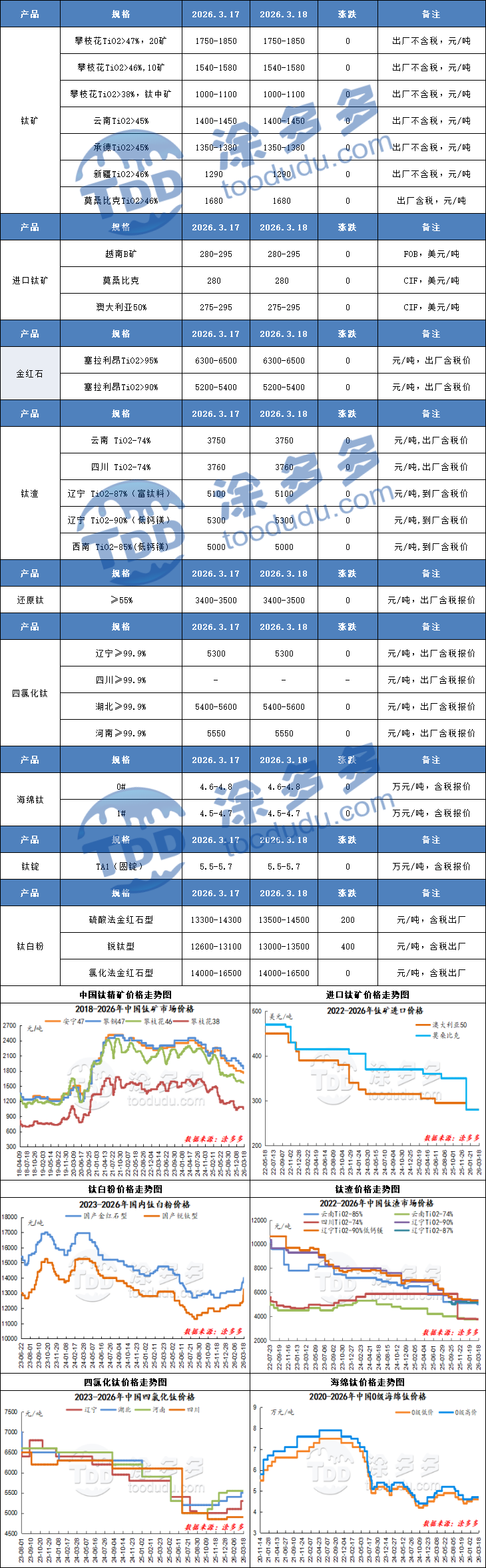 The market price for Grade 1 sponge titanium (civilian grade) is around 45,000-47,000 yuan/ton, while Grade 0 sponge titanium is quoted at around 46,000-48,000 yuan/ton. Sponge titanium prices remain firm, with downstream buyers mostly in a cautious wait-and-see phase. The overall market is currently stable.