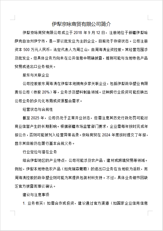 | Company Name | Yili Jingyong Commerce and Trade Co., Ltd. | Country/Region | China |