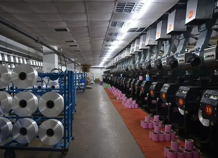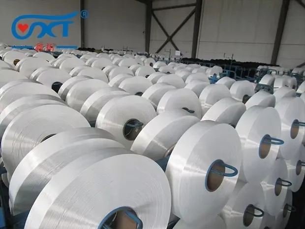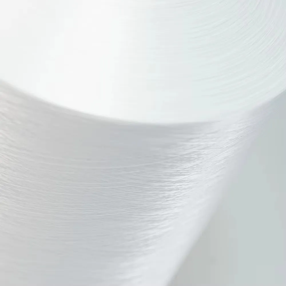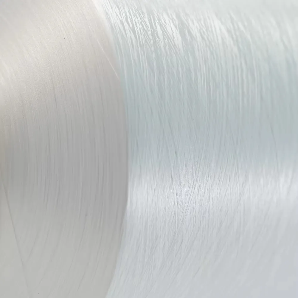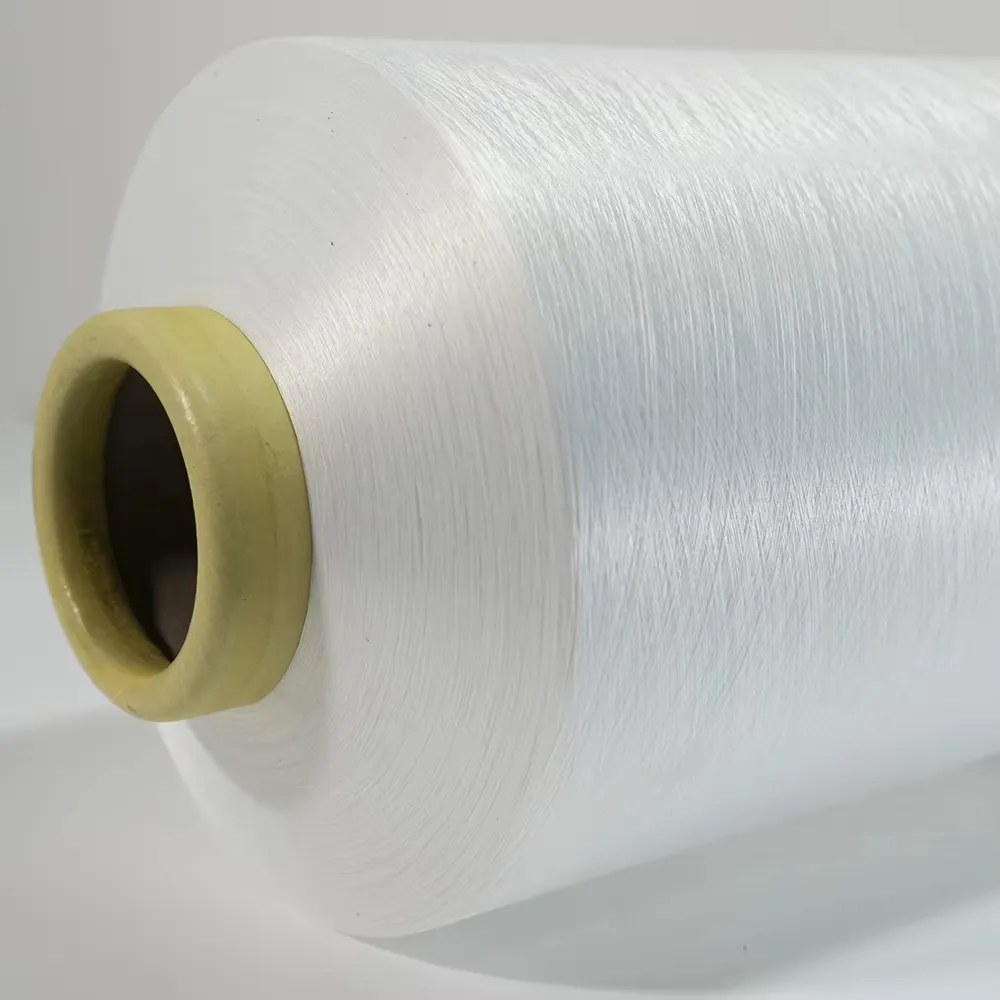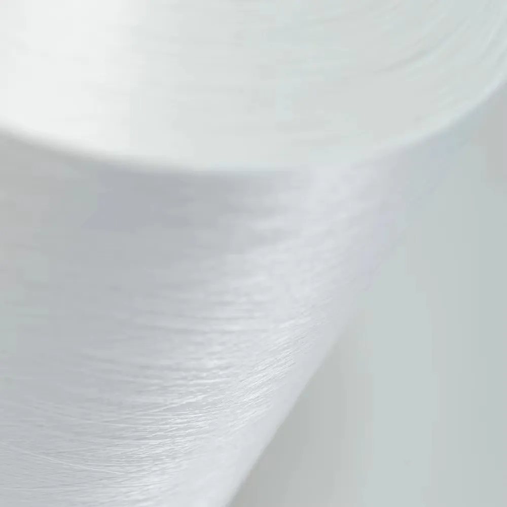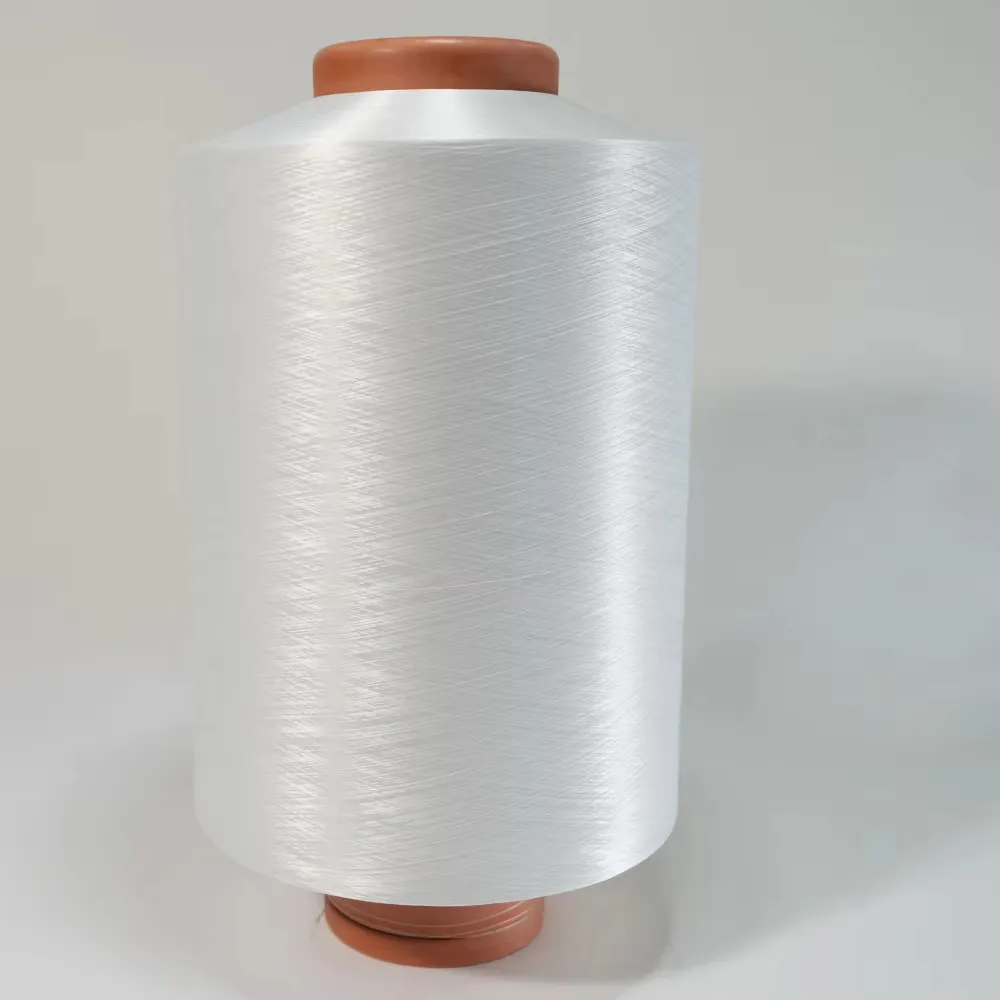 High-quality 150D/48F semi-dull white polyester DTY yarn, ideal for knitting, weaving, and stretchy fabric applications.