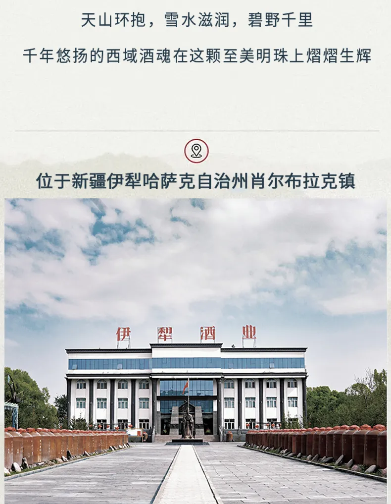 西域自古出美酒,稀世美酒擎天下。丝绸之路上,美酒曾是西域和中原往来的媒介,伴随着驼铃声声香飘万里。在新疆伊犁肖尔布拉克镇,勤劳的新疆人民以伊犁河谷盛产的优质粮食为原料,酿造了具有新疆特色的高品质白酒。为了让新疆人民品尝到本地特色的高品质白酒,也为了让更多的内地人民领略到西域白酒特色,伊犁酒业有限责任公司应运而生。