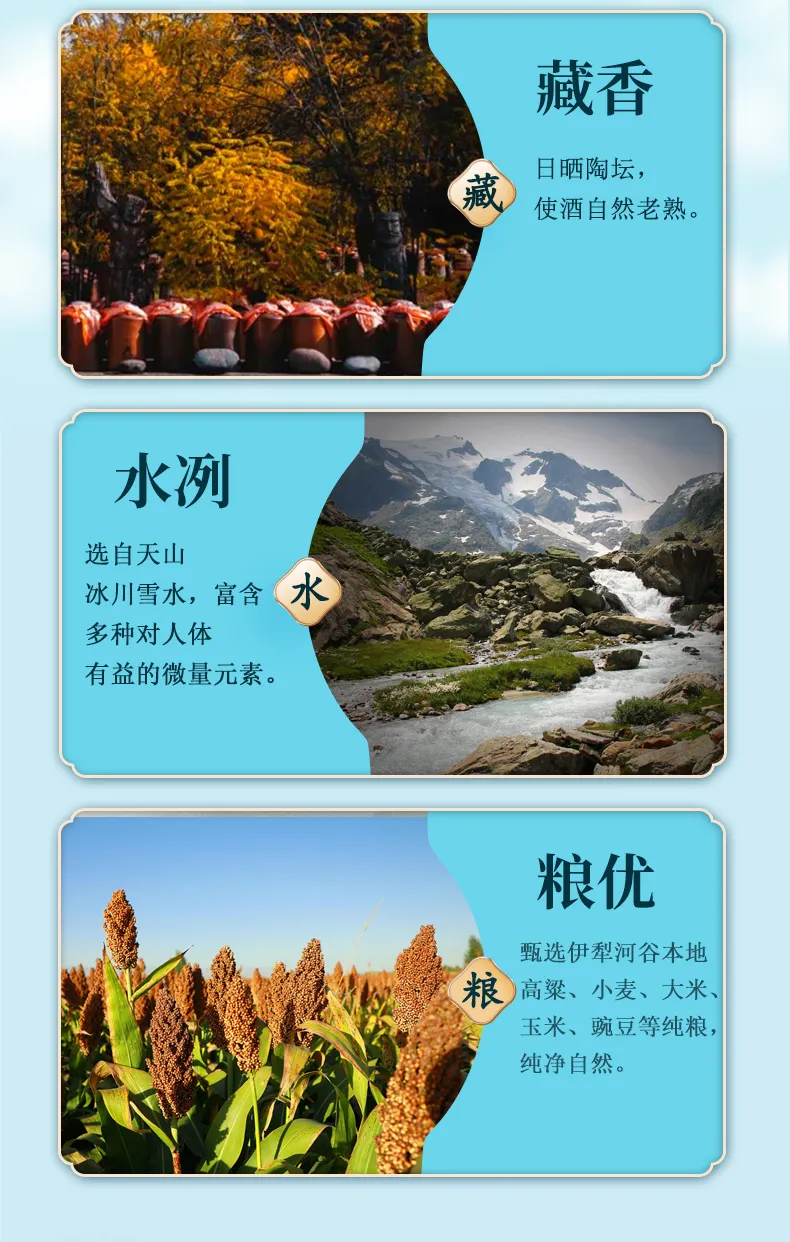 西域自古出美酒,稀世美酒擎天下。丝绸之路上,美酒曾是西域和中原往来的媒介,伴随着驼铃声声香飘万里。在新疆伊犁肖尔布拉克镇,勤劳的新疆人民以伊犁河谷盛产的优质粮食为原料,酿造了具有新疆特色的高品质白酒。为了让新疆人民品尝到本地特色的高品质白酒,也为了让更多的内地人民领略到西域白酒特色,伊犁酒业有限责任公司应运而生。