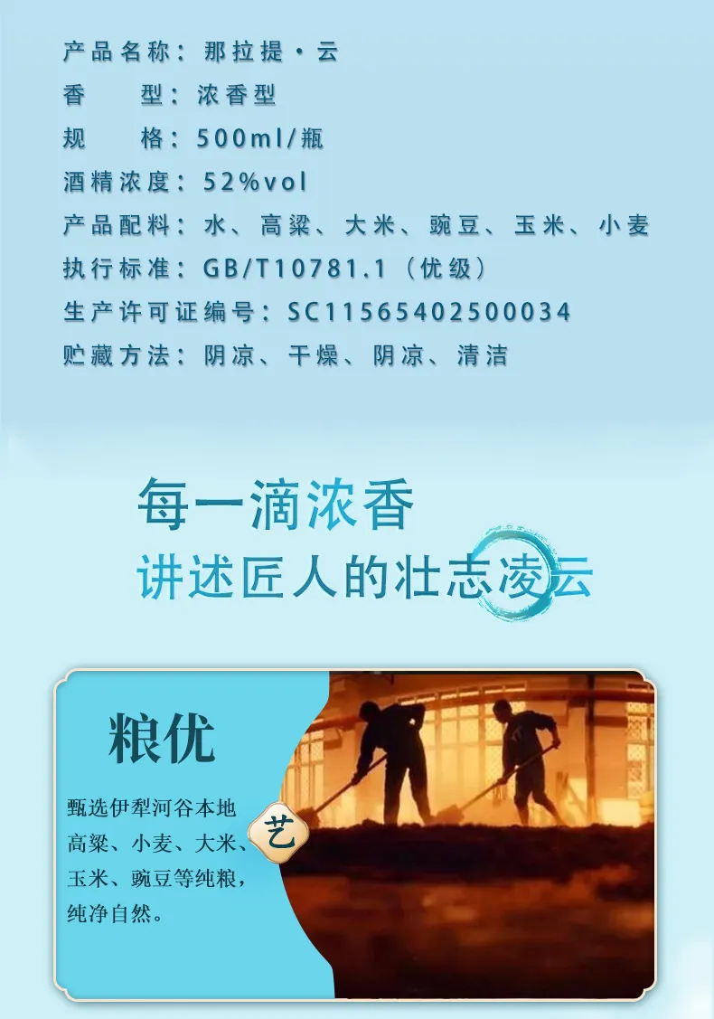 | Main Products | 主营那拉提云山水 人间仙境 净雅柔优、肖尔布拉克浓香馆藏、宽疆18、15、8。 | ||