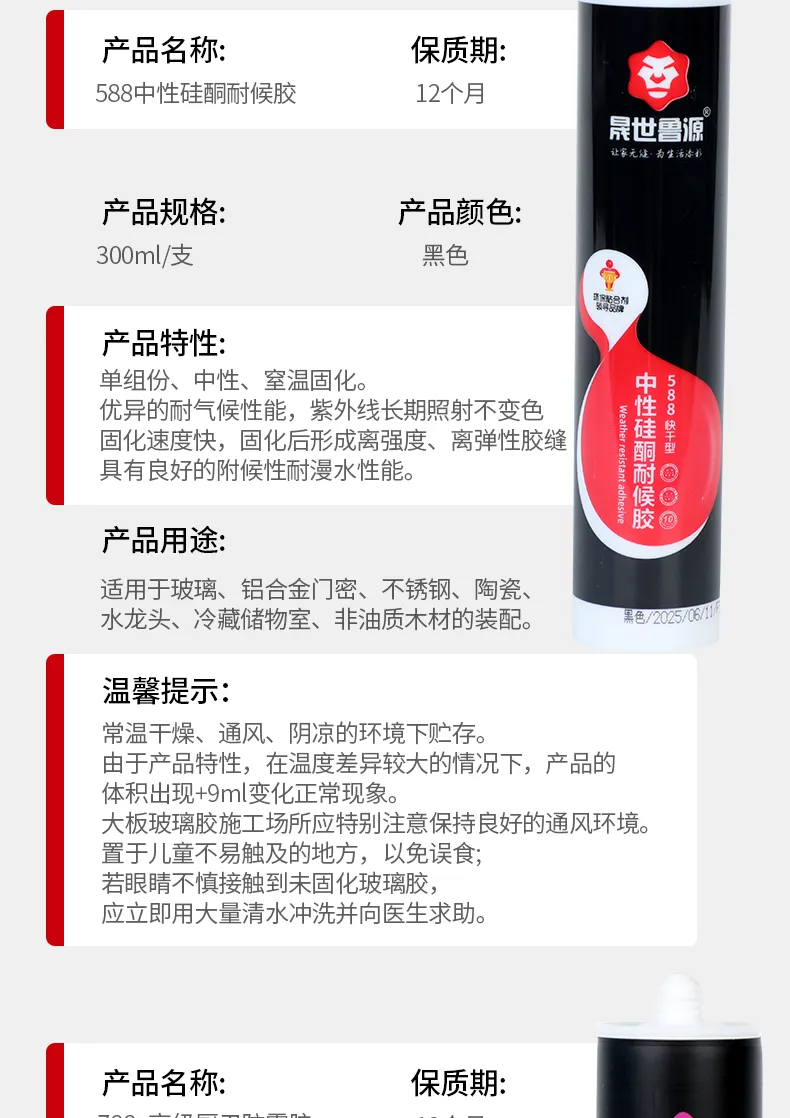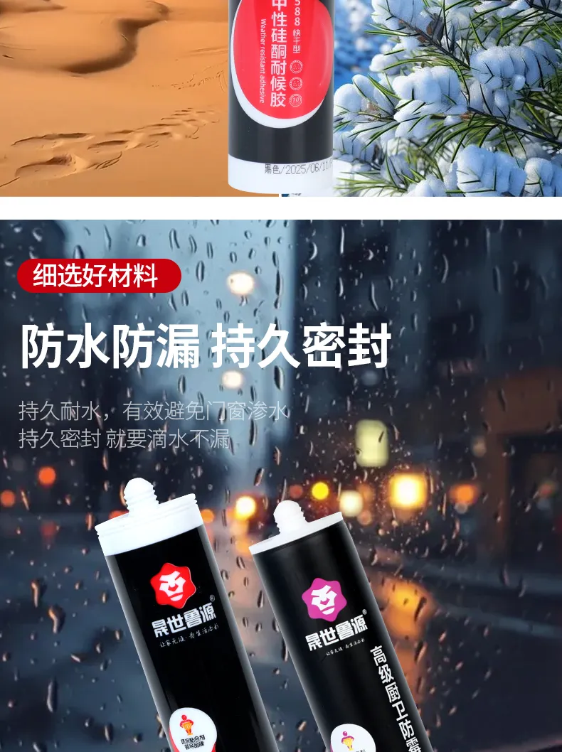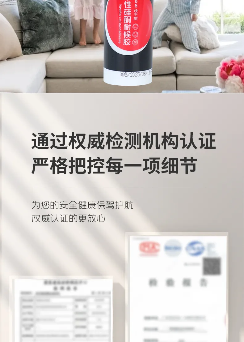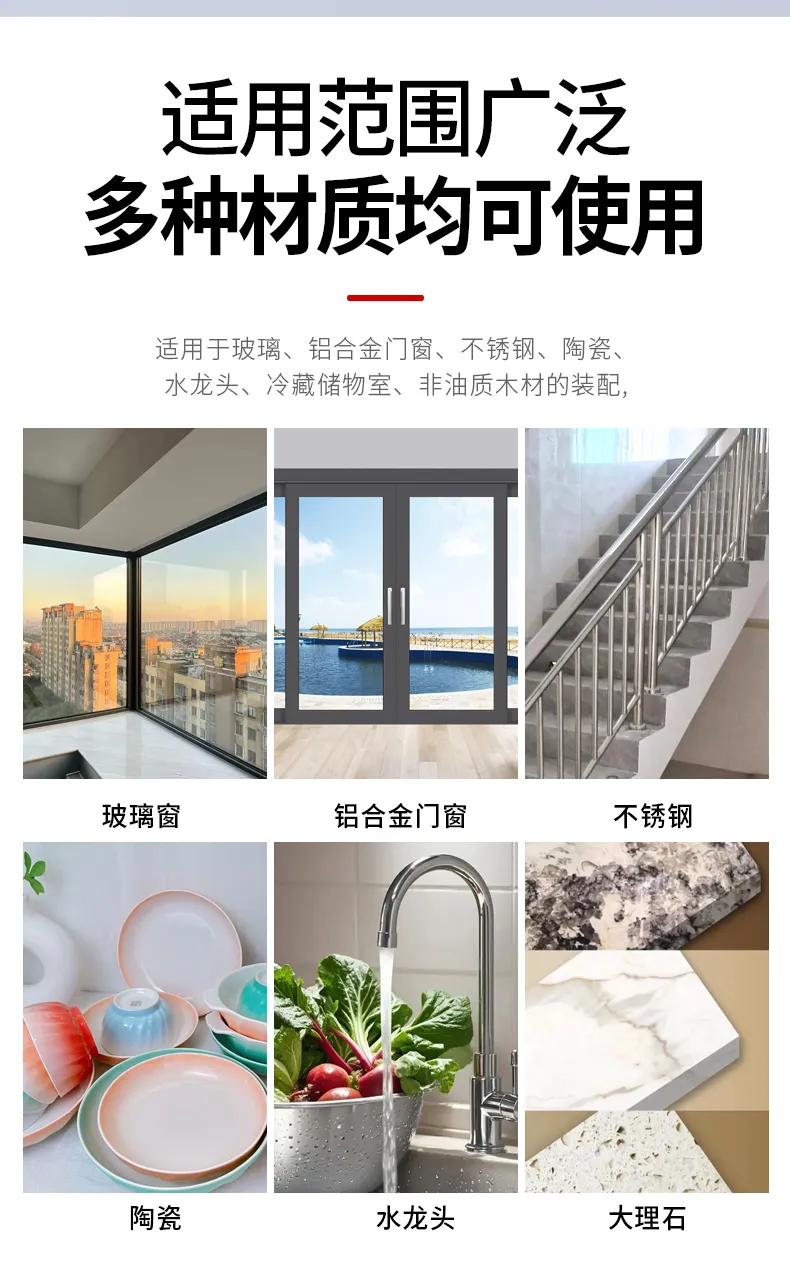 Single-component, neutral, room temperature curing. It has good weather resistance. There is no need for surface treatment for most building materials, such as glass, aluminum alloys, ceramics, and stones, under normal circumstances. After curing, the product forms an elastic body that is tasteless, non-corrosive, and has excellent properties such as weather resistance and ultraviolet resistance.