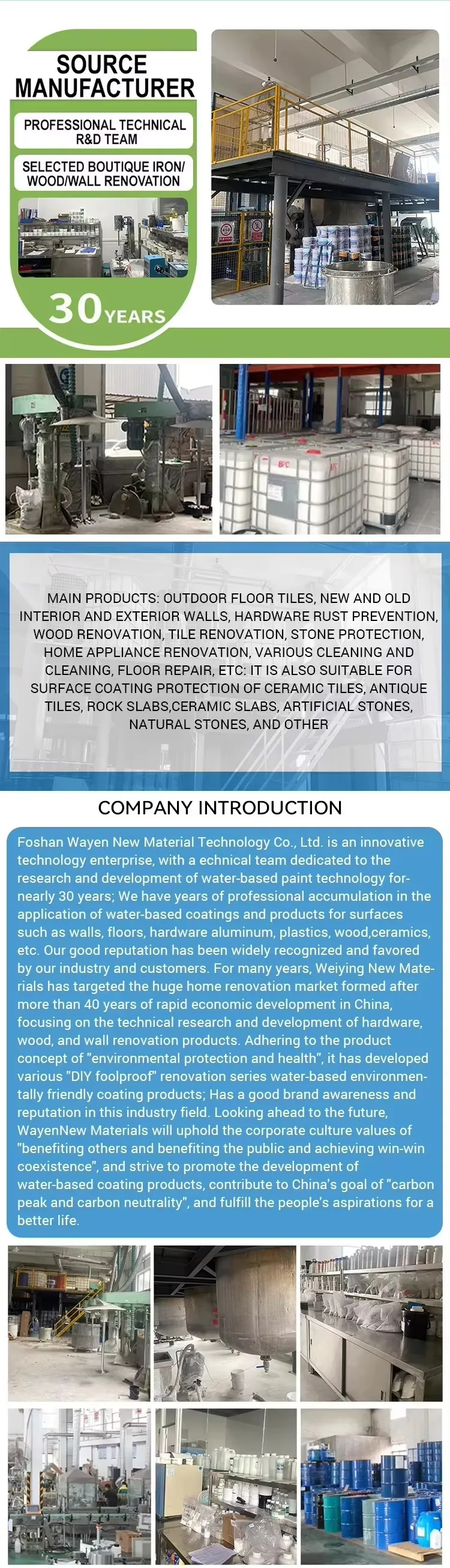 Foshan Wayen New Material Technology Co., Ltd. is an innovative technology enterprise, with a technical team dedicated to the research and development of water-based paint technology for nearly 30 years; We have years of professional experience in the application of water-based coatings and products for surfaces such as walls, floors, hardware aluminum, plastics, and wood. Our good reputation has been widely recognized and favored by our industry and customers!